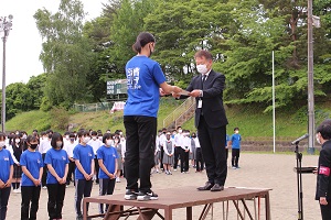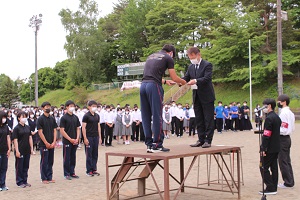 続いて、関東大会出場の部と、7月に高校野球夏季大会山梨県大会へ出場する野球部の壮行会が行われました。