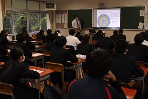 教育・経済・物理学などの分野で、高校生にもわかりやすく講義をしていただき、生徒も興味深く聴いていました。