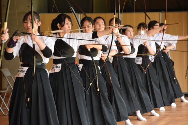 河高弓道部(FKQ)は男子2チーム、女子2チームが出場し、それぞれAチームが予選を通過しました。特に女子は15中の的中や皆中と呼ばれる全射命中の結果を残しました。このような結果は日頃の精進の成果であるとともに、自らの射形を崩さず、いつも通りの射ができたことの表れだと思われます。