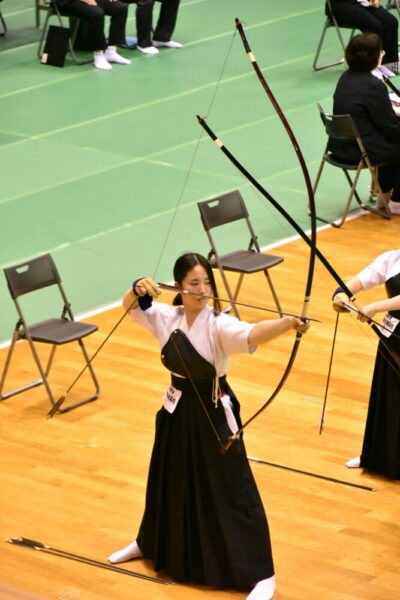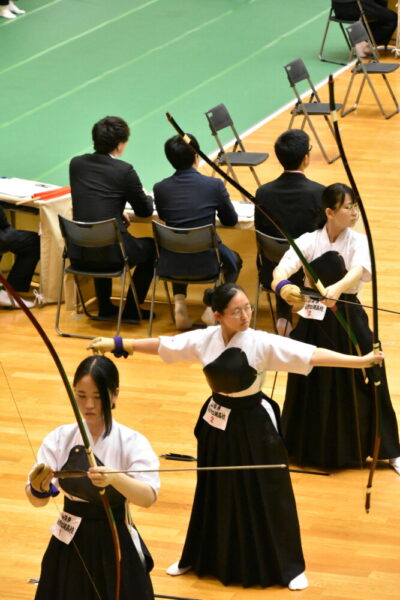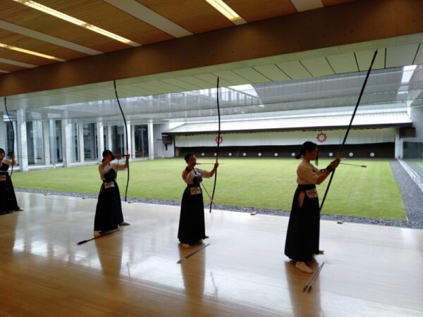 朝一で近的射場に入り、スケジュールに従って練習し、そのまま本番の行射に向かいます。