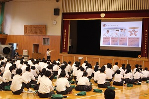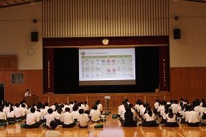 1年生の今日の「総合的な探究の時間」は、『山梨の大学を知ろう』ということで、健康科学大学の先生方をお招きしお話を聴きました。
