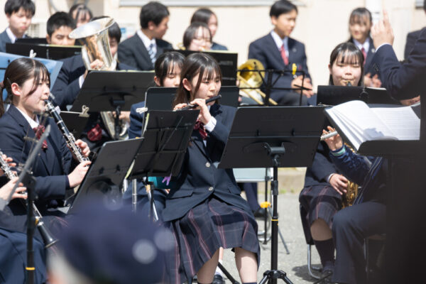 今回は、富士北稜高校、吉田高校、都留興譲館高校の地元高校吹奏楽部に加え、陸上自衛隊第一音楽隊の皆様と、合同演奏することができました。