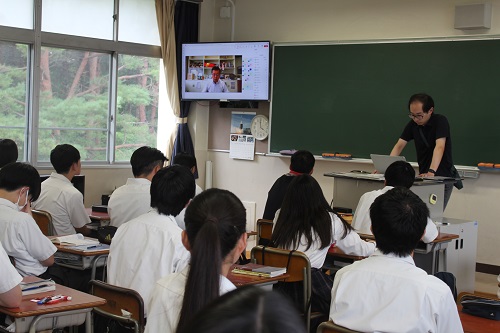 今日の日程は、始業式後に1・2年生は試験、3年生は授業になります。暑さなども考慮して、本日は校長室から各教室へ配信する形で始業式を実施しました。