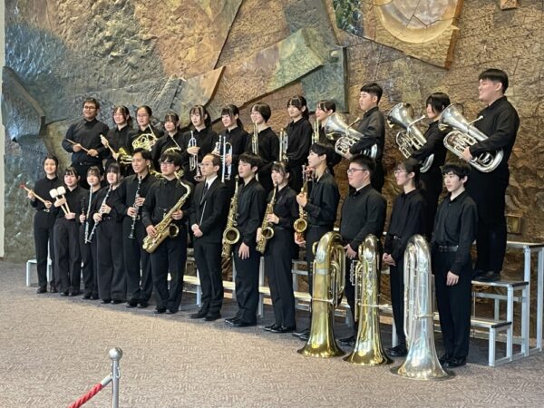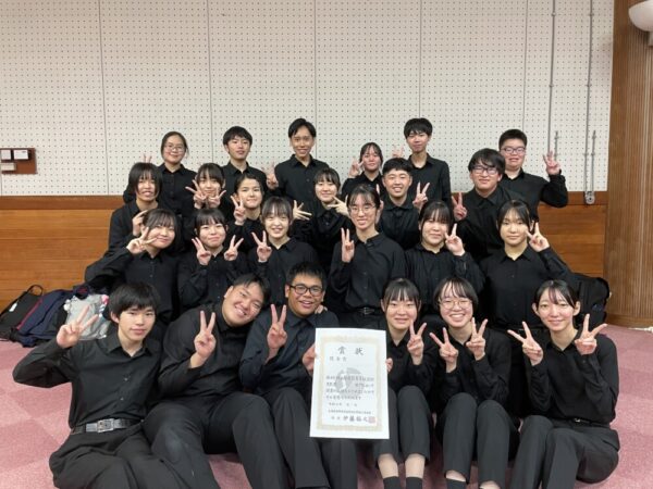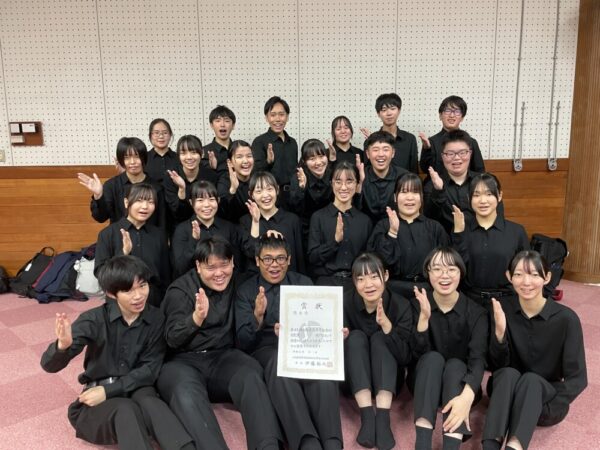 山梨県立富士河口湖高等学校 > 部活動 > 吹奏楽 > 【吹奏楽部】優秀賞!芸術文化祭 2024年10月28日カテゴリー: 部活動 吹奏楽 ◆大会結果◆ 【吹奏楽部】優秀賞!芸術文化祭 10月28日(月)に、芸術文化祭の吹奏楽部門が開催されました。 第45回山梨県高等学校芸術文化祭 吹奏楽専門部発表会 日 時:10月28日(月) 会 場:YCC県民文化ホール 演奏曲:救いの時の告知~ジーザス・クライスト~(片岡寛晶作曲) 1、2年生のみで行われる今回の大会、河高は1年生18名、2年生6名の計24名で挑戦しました。 結果は、優秀賞を頂くことができました! (コンクールでいう、金賞相等!6年ぶりの受賞でした!) 1年生主体のバンドながら、2年生が良く引っ張ってくれ、目標としていた賞を受賞することができました! 保護者の方々含め、応援してくださった皆さま、本当にありがとうございました!