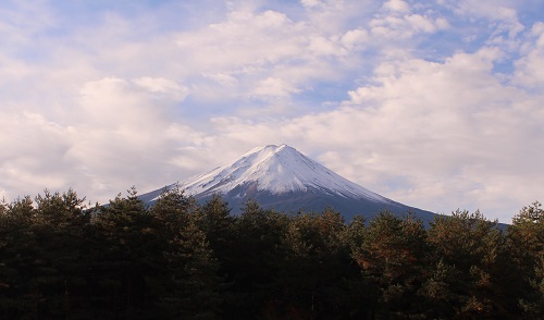 昨日の雨は、富士山では雪だったようです。今朝、霧が晴れるときれいに雪化粧していました。