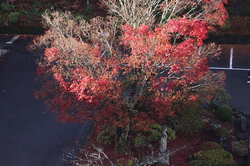 ロータリーのいろはもみじは、だいぶ散ってしまいました。心なしか植え込みの「青春の像(通称:健ちゃん像)」も寂しげです。