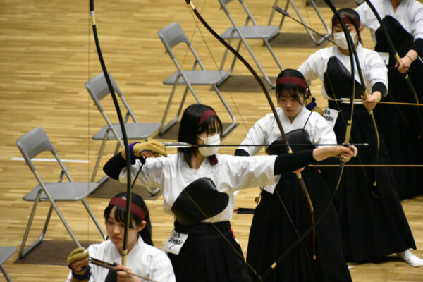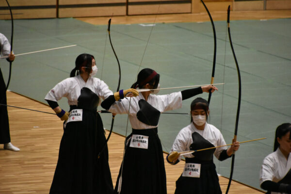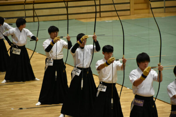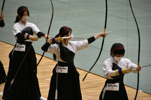 この大会は、近県の強豪校と山梨県内の高校の弓道部で互いの練度を確かめ合うため、毎年行われています。