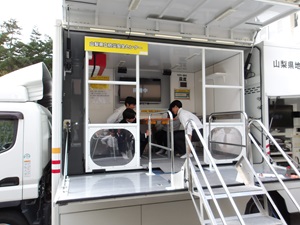 2年生KIP「防災を考える」班は、地震体験車で実際の揺れを体験し、本当の地震が起きた時に何ができるのか、実際には動けないことなどを実感していました。