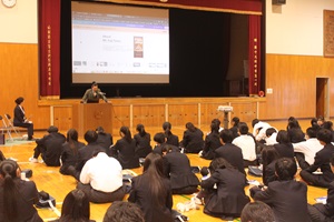 山梨県立富士河口湖高等学校 > 学校から > KIP活動(1年・2年) 2025年10月15日カテゴリー: 学校から KIP活動(1年・2年) 今日のKIP(総合的探求の時間)です。 1年生は、講演会です。 日ごろ様々な面からご支援いただいている、粟井財団様よりお話をいただきました。粟井財団様の理念や地域への支援活動などを、改めて具体的に知る機会になりました。 また、実際に粟井財団からの支援で活動されているAlex Tyo Kurosu様から、活動の内容や発行している冊子などをご紹介いただき、地域に貢献するための一つのヒントをいただきました。 冊子は、富士吉田市や富士河口湖町の観光施設や宿泊施設に置かれて、外国人の方々に活用されているということです。 2年生KIP「防災を考える」班は、地震体験車で実際の揺れを体験し、本当の地震が起きた時に何ができるのか、実際には動けないことなどを実感していました。 これから各グループの研究まとめに向かうにあたり、これまでの研究の修正などに役立てます。