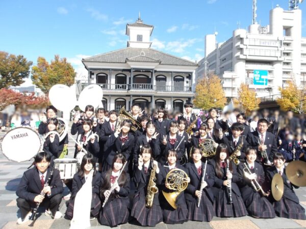 今年は、山梨学院高校さん、吉田高校さんとマーチングチームを組み、一緒に演奏させていただきました。