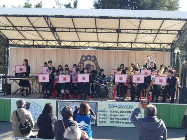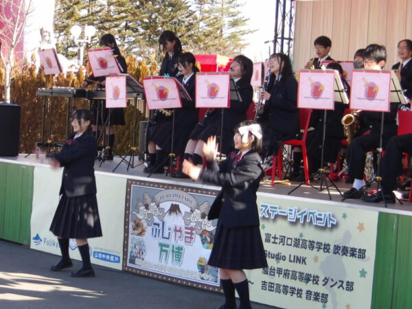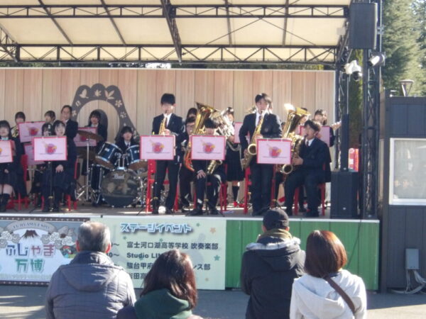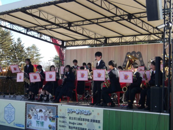 山梨県立富士河口湖高等学校 > 部活動 > 吹奏楽 > 【吹奏楽部】ふじやま万博 -FUJIYAMA EXPO- 2025年12月14日カテゴリー: 部活動 吹奏楽 【吹奏楽部】ふじやま万博 -FUJIYAMA EXPO- 12月13日(土)に、富士急ハイランド園内で演奏させていただきました! ふじやま万博-FUJIYAMA EXPO- 日時:12月13日(土) 10:00~ 会場:富士急ハイランド園内 セントラルパーク 演奏曲:シロクマ、かわいいだけじゃだめですか?、「君の名は。」コレクション 他 今回このふじやま万博は、13日・14日の2日間開催で、ステージ発表の部では私たち河高吹奏楽部がトップバッターを務めました! 絶叫の声が飛び交う中、明るく楽しく演奏できました! お越しいただいた皆様、ありがとうございました!