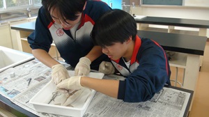 また生物選択者は、本校教諭(生物)の大沼先生の指導で「イカの解剖と観察」を行いました。