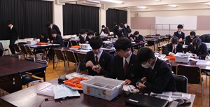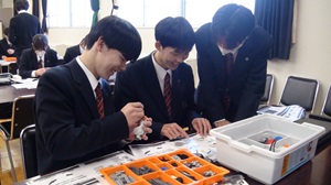 2年生の理系を対象に物理選択者は、山梨大学大学院 総合研究部 工学域機械工学系 舩谷先生他4名の先生方から「ロボットの組み立てとプログラミング」について、直接講義とご指導をいただきました。