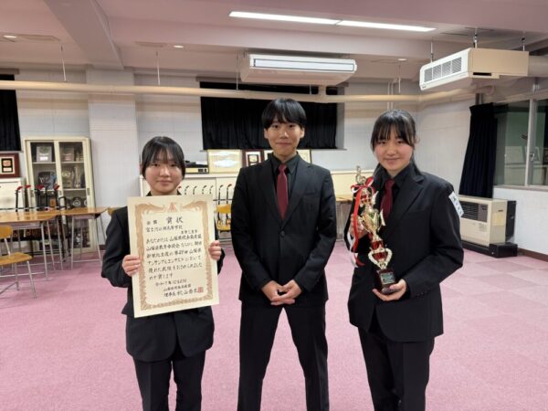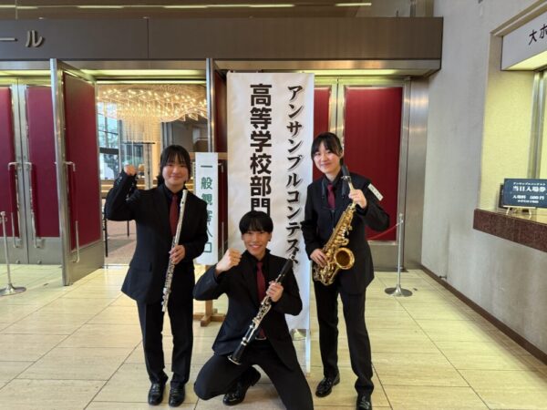 山梨県立富士河口湖高等学校 > 部活動 > 吹奏楽 > 【吹奏楽部】祝!金賞代表!山梨県アンサンブルコンテスト 2025年12月22日カテゴリー: 部活動 吹奏楽 ◆大会結果◆ 【吹奏楽部】祝!金賞代表!山梨県アンサンブルコンテスト 先日、アンサンブルコンテストの県大会が行われ、私たち河高吹奏楽部も出場してまいりました! 第49回山梨県アンサンブルコンテスト 日 時:2025年12月21日(日) 会 場:YCC県民文化ホール・大ホール 編 成:木管三重奏(Fl.&Cl.&A.Sax.) 出演順:高等学校の部・23番(全38チーム中) 演奏曲:ヒカリノユイ(片岡寛晶作曲) アンコンは、1チーム3~8名で指揮者なし5分間の演奏を発表するコンテストです。 今年の河高は、その最少人数の3人で勝負を挑みました。 結果は、金賞ゴールド!を受賞することができました! そして今回は、山梨県代表として西関東アンサンブルコンテストへの出場権をいただくことができました! 河高がアンコンで上位大会に進むことができたのは、1993年度以来の実に32年ぶりのことです。 (当時は、”関東”大会だったので、”西関東”大会になってからは初めてのことです。) 出場メンバーの3人、本当によく頑張りました! 応援してくださった地域の皆様、保護者の方々、本当にありがとうございました! 西関東大会に向けて引き続き練習に励みたいと思います。 今後とも、河高吹奏楽部の応援、どうぞよろしくお願いいたします! 第31回西関東アンサンブルコンテスト 日 時:2026年1月25日(日) 会 場:久喜総合文化会館(埼玉県久喜市) 出演順:高等学校の部・2番(全25チーム中)