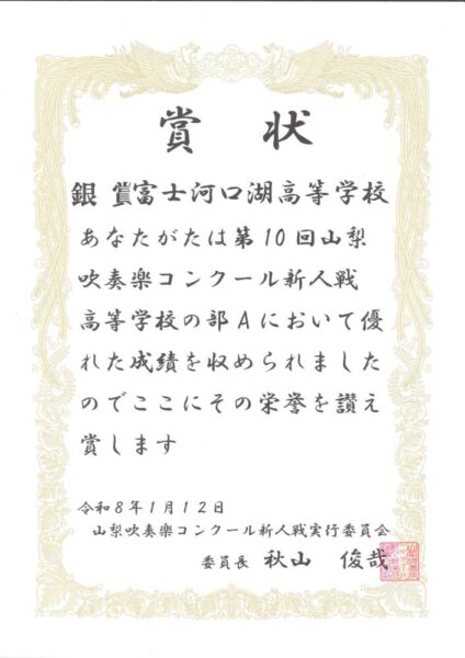 目標としていた金賞には届きませんでしたが、今回の新人戦とその練習期間を通して多くのことを学び成長することができたと思います。