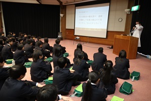途中、講師の先生から発せられた問いに積極的に回答したり、先生のジョークに笑いがおきるなど、とても活気に満ちた講演会になりました。